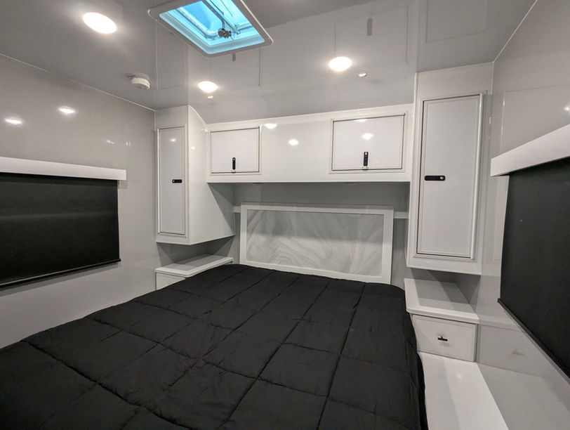 The IROK SS (Side Sleeper) LUXE Series is designed to give you the perfect balance of hauling power and comfortable living space. Each model features an innovative double full XL-size bed that easily converts into a spacious couch, giving you the flexibility to relax during the day and sleep comfortably at night. When not in use, the bed lifts and secures to the wall with a heavy-duty strap, opening up more room for your gear and toys.